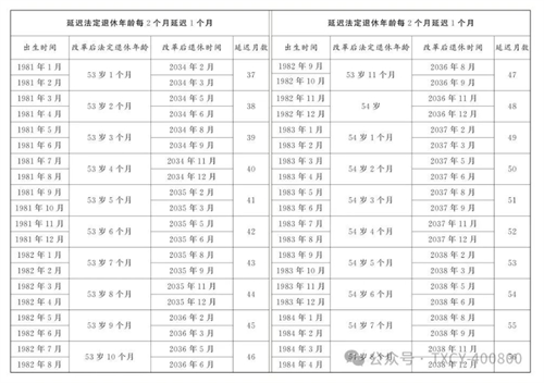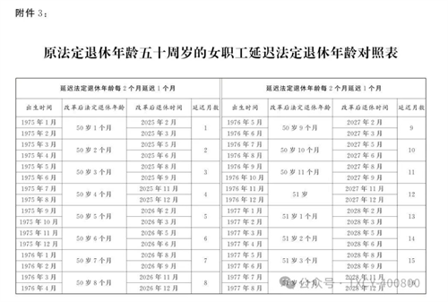 3.原法定退休年齡五十周歲的女職工延遲法定退休年齡對(duì)照表
